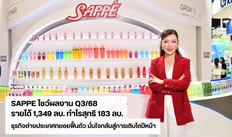 SAPPE รายงานผลประกอบการ Q3/68 รายได้ 1,349 ล้านบาท กำไรสุทธิ 183 ล้านบาท ธุรกิจต่างประเทศทยอยฟื้นตัว มั่นใจกลับสู่การเติบโตปีหน้า