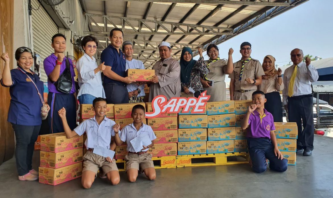 Sappe PCL operations vice president, Mr. Nattawut Charumekin (4th from left), handed SAPPE products to 200 schools and foundations to mark the 2020 Children’s Day on January 8.